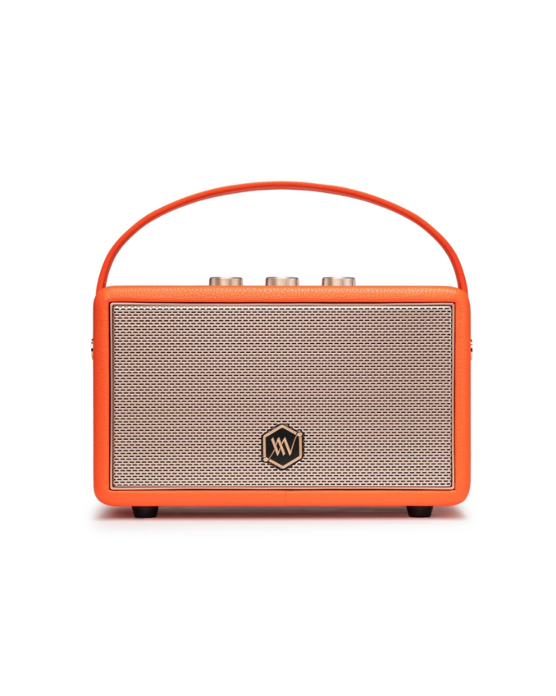 Các núm xoay điều chỉnh âm lượng, bass và treble được bố trí tinh tế ở mặt trên loa, tạo cảm giác tương tác analog rất "thật" và "chất". Với quai da gọn nhẹ, bạn có thể dễ dàng mang loa theo mọi lúc mọi nơi.